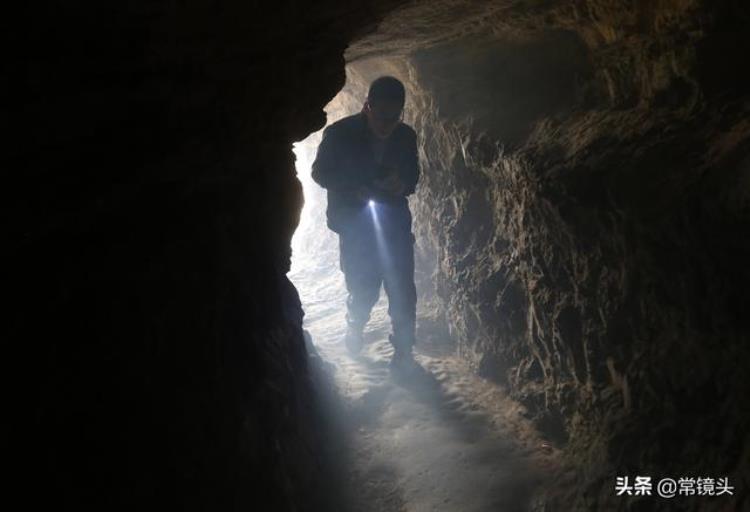 走到洞口前,只能容下一人经过的洞口处看似平淡无奇,越往里走,里面却越令人称奇,走进洞里之后,越走光线就越暗,最终整个环境全部变成漆黑,没有一丝光亮。由于洞里没有任何灯光照明设施,只能借着手电的光,小心翼翼地穿过狭窄陡峭的山洞。