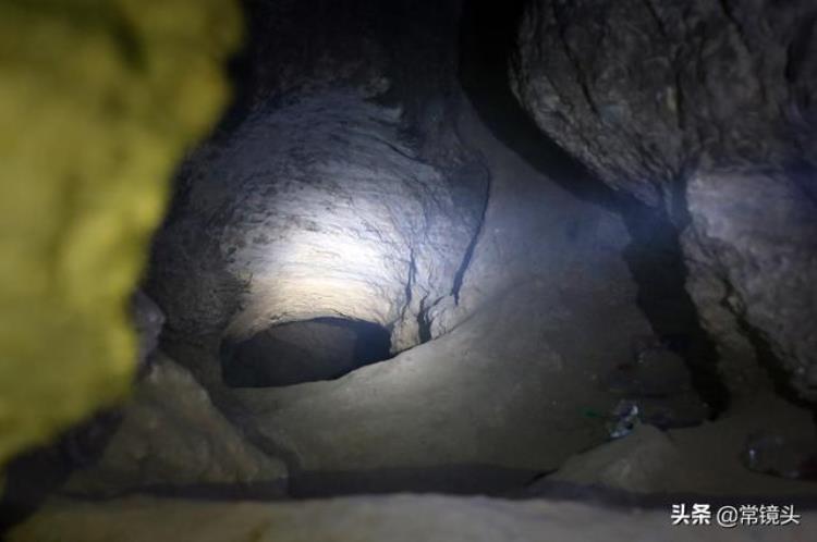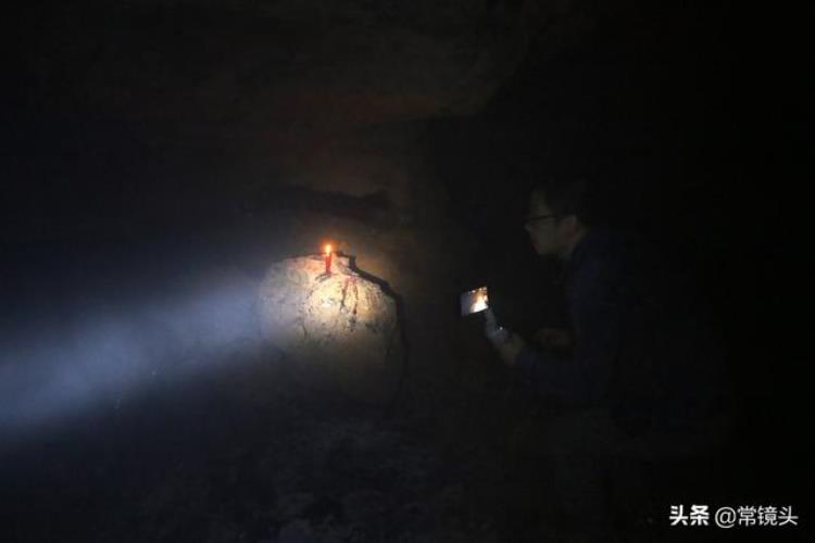 打着手电筒在云梦洞穿行,气氛看起来很神秘。