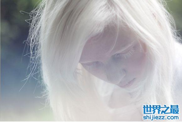 患者视网膜无色素,虹膜和瞳孔呈现淡粉色,怕光。皮肤、眉毛、头发及其他体毛都呈白色或黄白色。白化病属于家族遗传性疾病,为常染色体隐性遗传,常发生于近亲结婚的人群中。