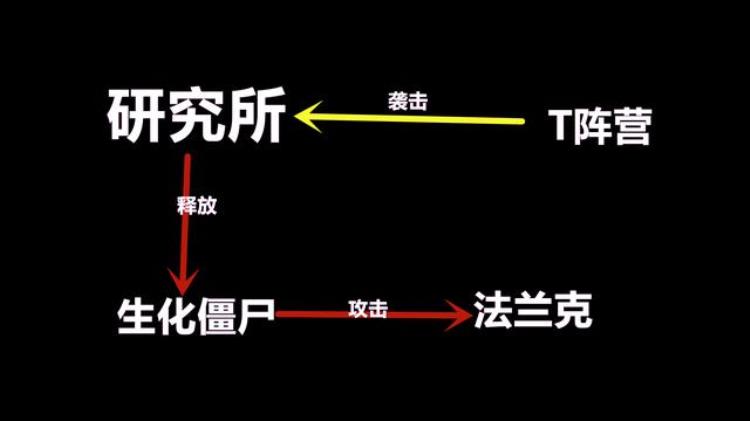 可后来,T阵营袭击了研究所,制造了爆炸事件,由于爆炸的缘故,大量的僵尸被释放出来了,开始肆无忌惮攻击起了爆炸事件的幸存者,这里也包含了法兰克,他被僵尸围堵的时候,为了活命,于是拆下了一个钩子绑在自己的手臂上和生化僵尸战斗,可终归是寡不敌众,被僵尸抓伤后成了他们的同类。