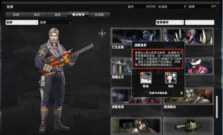 迷雾鬼影叫法兰克,他原先是一个出租车司机,因为一场车祸的缘故,导致了他失去自己的右手,也正因为右手残疾,使得他丢了饭碗,后来,他到了雷克斯研究所当清洁工,生化危机爆发了,他因为意外感染变异成了僵尸,因为吸入了大量烟雾,还拥有了释放烟雾的能力。