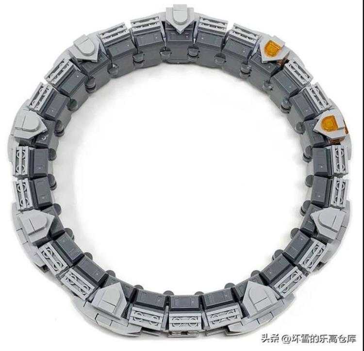 关于星际大门,作者上传了用实际砖块,而非软件渲染的结构照片,这种铰链连接围合形成的圆,十分还原原作的大门外观,更为MOC玩家提供了圆形搭建的样例。