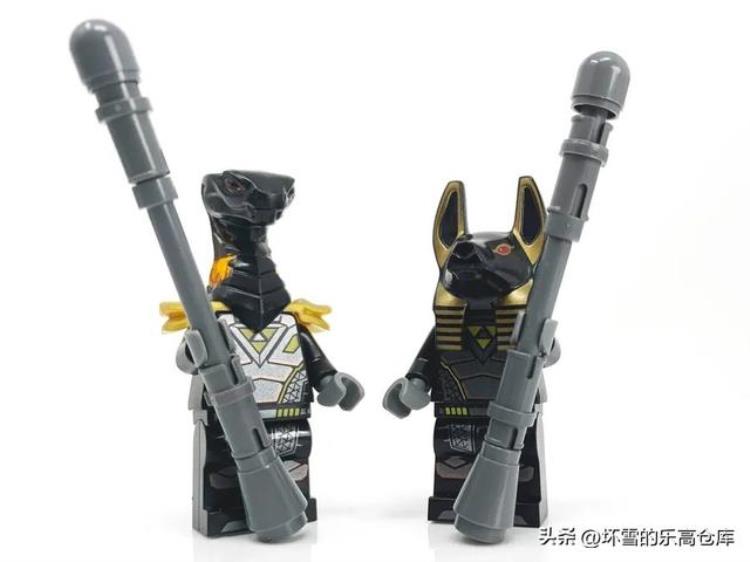 套装依然包括六个代表性角色:杰克奥尼尔上校、萨曼莎卡特船长、蒂尔克和丹尼尔杰克逊博士组成的四人探险小队,每个人都拿着一件具有代表性的手持设备(包括有讲述古代知识的书籍、提包和高尔夫球棍等);另外两个是雅法战士(一个是蛇头模样,另一个则是阿努比斯的狼头形象,挺有埃及神明的感觉,也难怪很多人觉得金字塔是外星文明留下的宇宙飞船。),守卫大门的他俩手上拿着的都是砖砌的法杖武器。