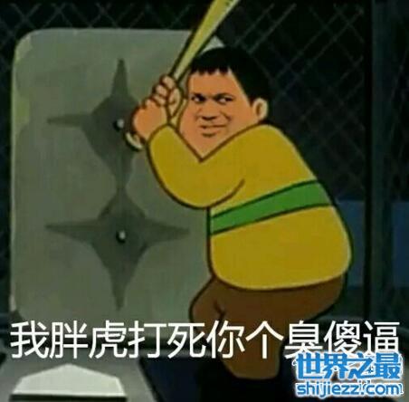 胖虎是动画片《哆啦A梦》中的角色,胖虎表情包最近十分火,因为体型壮实,性格又十分粗犷,所以同年级的学生都十分怕他。胖虎表情包中将胖虎的脸部扣掉,换上了表情包专用脸型,配上搞笑的段子,让人看了忍俊不禁。