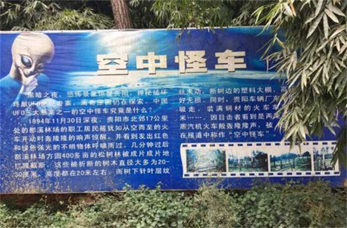 贵州上空出现的空中怪车是一个未解之谜。相信有不少人都曾经听说过贵州的空中怪车,这是在1994年出现在贵州省的一个奇怪事件。当天晚上贵州的一个林场里,突然天空上出现一个巨型的物体,在他的冲撞之下,几乎把林场里大半的树木都给拦腰折断。等到林场的工作人员起来查看的时候,发现在天边居然有着一个类似于火车的东西给飞走了,所以才有了空中怪车的传闻。