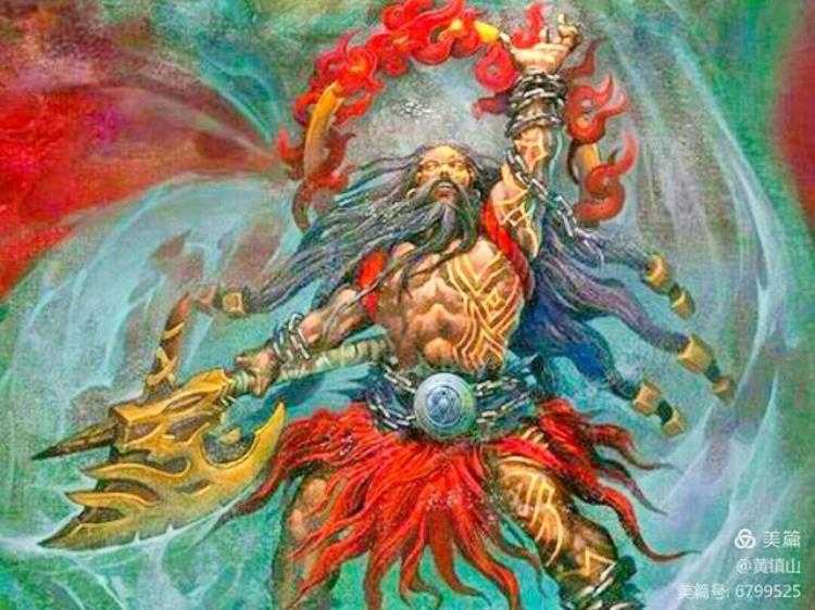 无独有偶,在云南沧源佤族自治县勐省、勐来乡境内,考古专家又发现了一幅更为形象的盘古壁画:“云南沧源岩画”(见上图)。这是原始先民用赤铁矿粉与动物血调合成颜料绘制而成,内容极为震撼。一人头上发出太阳之光芒,左手握一石斧,右手拿一木把,两腿直立傲视一切。显然,这与盘古用斧头劈开混沌、开天辟地的传说一致。据专家考证,这幅岩画为3000多年前原始人的作品。换言之,早在3000多年前,中国人就有盘古开天辟地的传说。