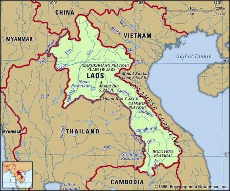 老挝地图,来自大英百科