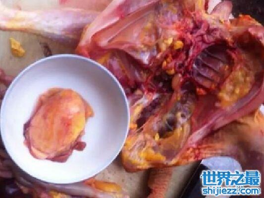这个看起来像内脏一样的鸡宝是什么东西?据悉是病变卵胞,基本成分是类似于卵黄的一种物体。由于是卵巢的病变,功能的异常,或者是受到了外界的应急影响,导致异常发育的卵胞,也就是我们平常说的卵黄,破裂进入到腹腔中的一种特大的物质。那么既然是病变的物质,为何还能够卖出这么高的价格呢?