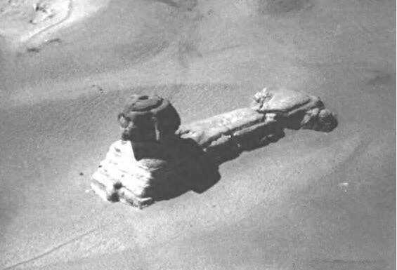 尽管现在狮身人面像被认为是埃及法老雷吉德夫根据他父亲胡夫的形象所建,但证据表明,这个雕像的建造时间早于胡夫时期。最初,狮身人面像只露出头部,其余部分都被掩埋在沙土中。此外,狮身人面像表内部和底部都有空洞结构,似乎指向地下尚未探明的领域。然而,对于这个神秘雕像的深入挖掘工作已被中止,原因仍然不为人知。