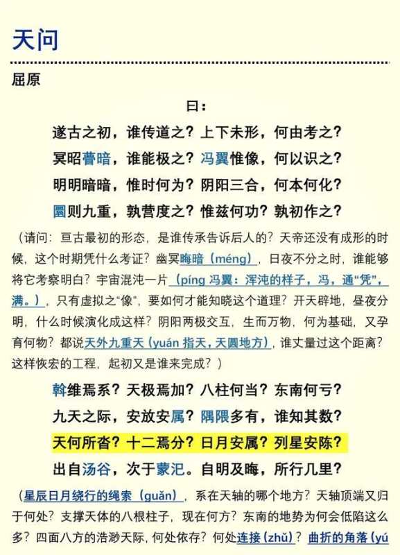 屈原在《天问》中提出了一百七十多个问题,内容涵盖了天地宇宙、神话历史。诗中隐藏着哪些深奥哲理与古人未知的知识?现代学者众说纷纭,疑云重重。
