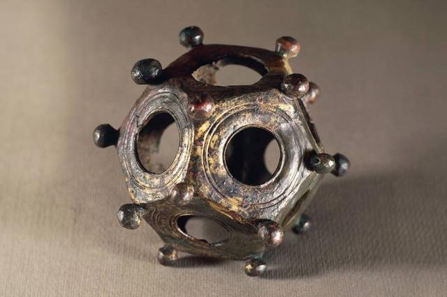 但问题是,考古学家完全不知道古罗马人为何制作它们。从十二面体本身找不到线索:它们由铜合金制成,大小从4厘米到11厘米不等,12个面上各有一个圆孔。