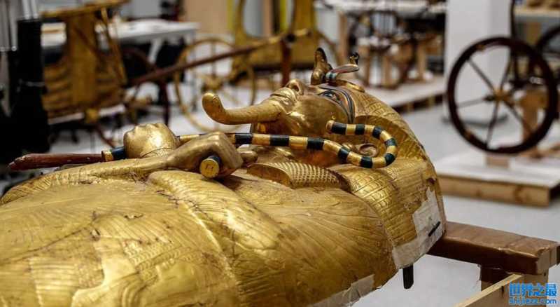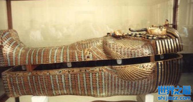 金棺里的木乃伊法老埃及艳后棺材上有鸟还有很多的图腾