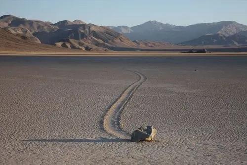 三:会动的石头。这种自己会移动的石头,出现在美国内达华山脉东侧的加州“死亡谷”,提到死亡谷,大家想到的肯定是干枯的沙漠和满眼的荒凉,也确是如此。
