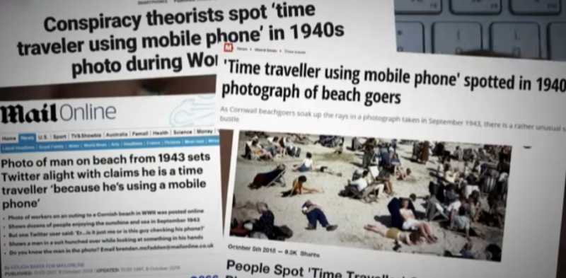 这件事发生在1999年,一家名为Weekly World News的杂志声称,他们发现了一张1918年的旧剪报,上面展示了一位时间旅行者,据了解,那张剪报来自一份早已不复存在的名为 《纽约警察信使》的报纸。 标题写着“神秘人被发现死在2英尺长的“太空管”中。