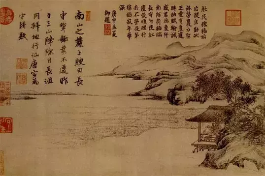 不久,唐寅在孙氏园林的“抱瓮园”内参加多人的饮宴时,又即兴饮酒赋诗《宴孙氏抱瓮园见梨花大开立成一律》,也就是后来画中的意境。