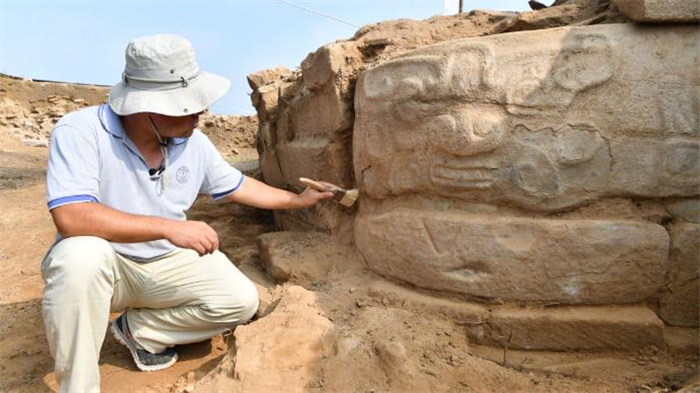 通过不断地调查分析,科研人员认为,背后存在着三种可能性。首先,这两件大型人面石雕放在墙角的位置,可以为整体结构带来稳定性作用。