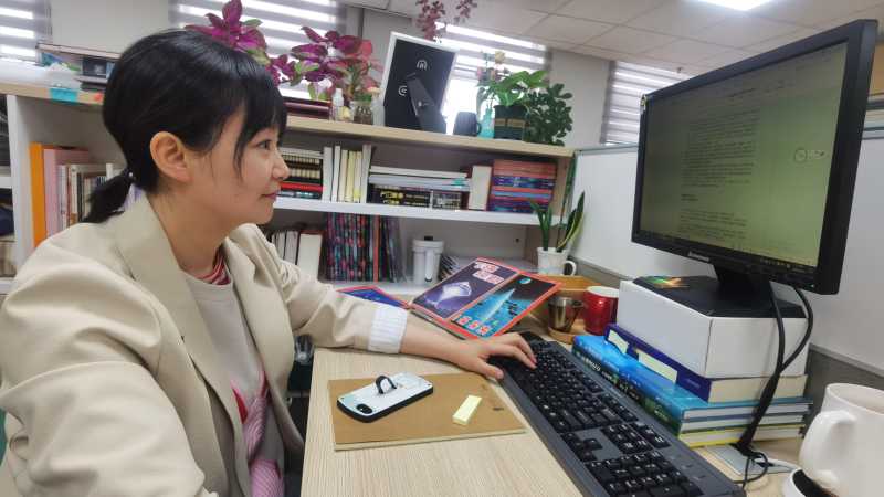 4月13日,《飞碟探索》编辑钱茹在工作。 新华社记者 崔翰超 摄