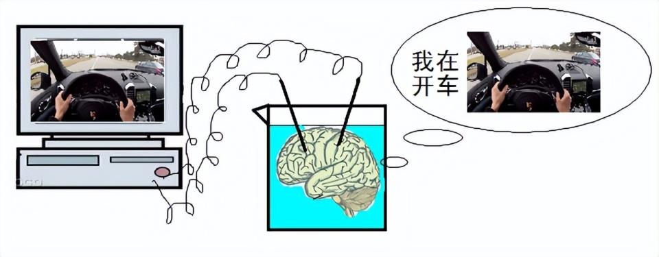 好了,现在我们有一个电子的大脑,用它来替换缸中的肉脑,效果是一样的。以前是肉脑感觉自己在一个真实的世界,现在换成了“电脑”感觉自己在一个真实世界。