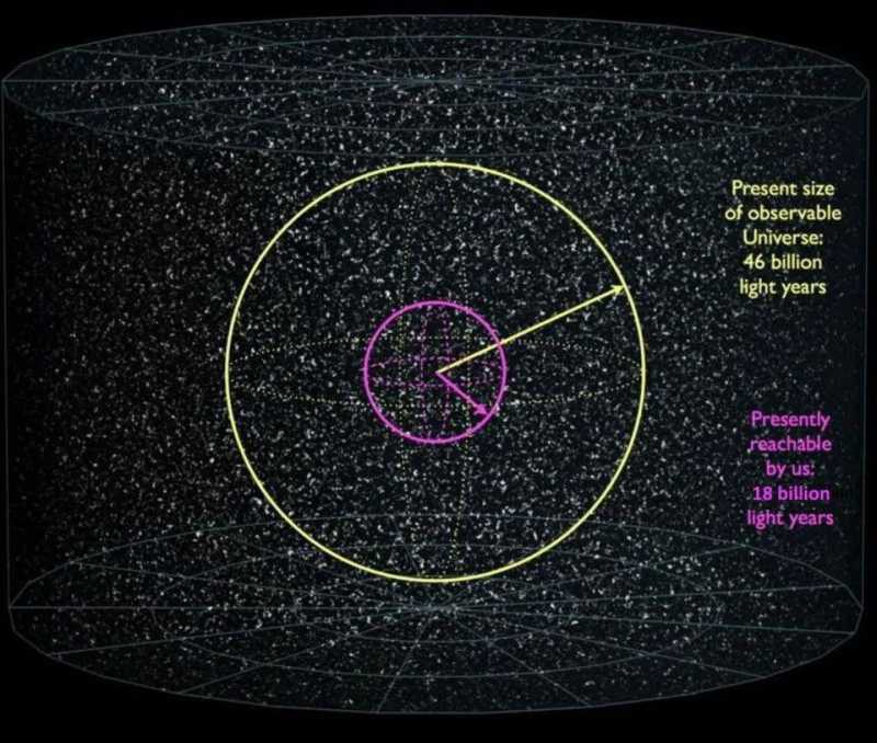 而且目前180亿光年以外的位置,星系推行的速度已经超过光速,即使我们现在以光速追这些星系,也永远无法到达。