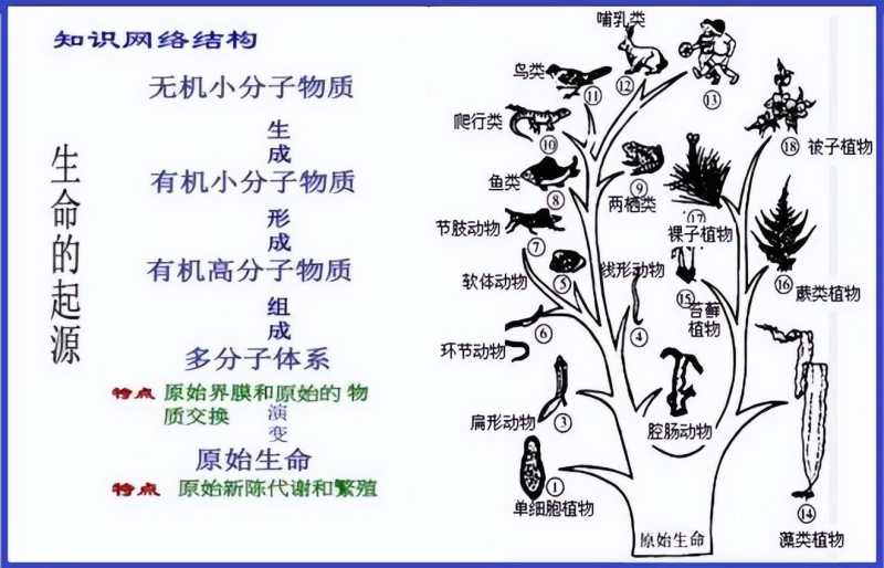 现代综合进化论对物种演化和进化已经有了越来越清晰的脉络,这就是万物同宗,世界上所有生物都起源于最早的原始细胞,原始细胞从单细胞演化到多细胞,从异养厌氧细胞到自养厌氧细胞再到需氧好氧细胞,然后生物从低级逐步分化进化出植物和动物,动物又从菌类到软体,再到脊椎、爬行、哺乳动物。