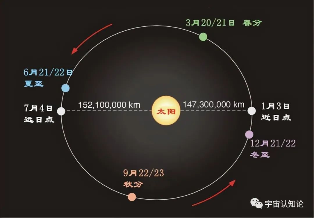 因为我们知道农业生产需要知道准确的24节气,例如常说的春分、秋分、夏至和冬至,也就是上图中地球所处的四个位置。