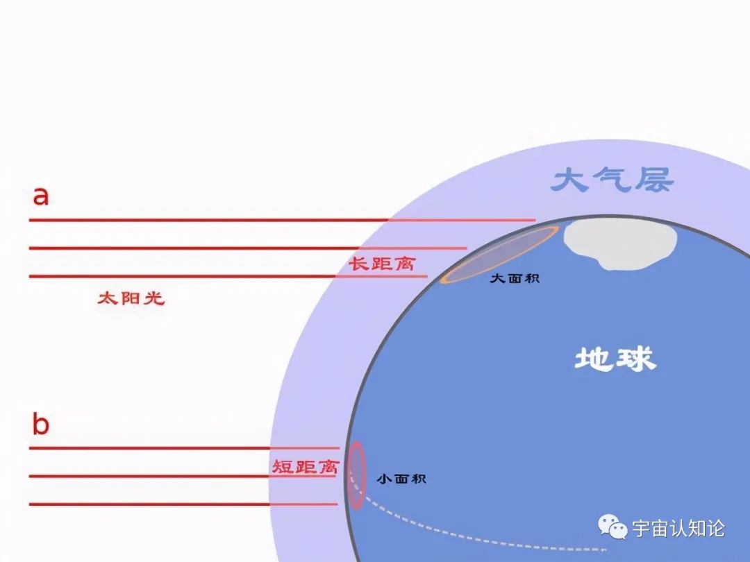 四季变化这个非常简单,上图就是太阳光直射和斜射的区别。