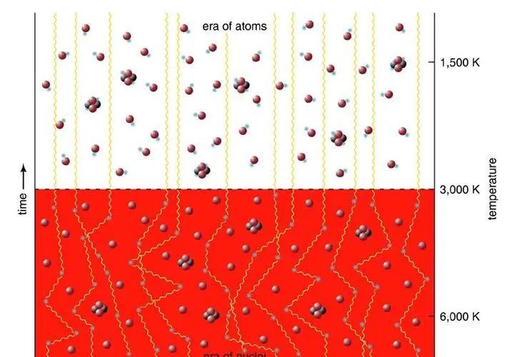 首先要清楚的是,在宇宙诞生到现在,或者是到未来,都一直在膨胀,从来没有停歇过,并且宇宙的膨胀速度也远远超过了光速。宇宙在经历了再加热阶段以后,大爆炸开始,并经历了一系列的粒子与粒子的高能撞击,也创造出了我们今天所知或未知的所有基本粒子。但知道大爆炸的38万年后,随着宇宙的膨胀冷却,中性原子才得以形成。