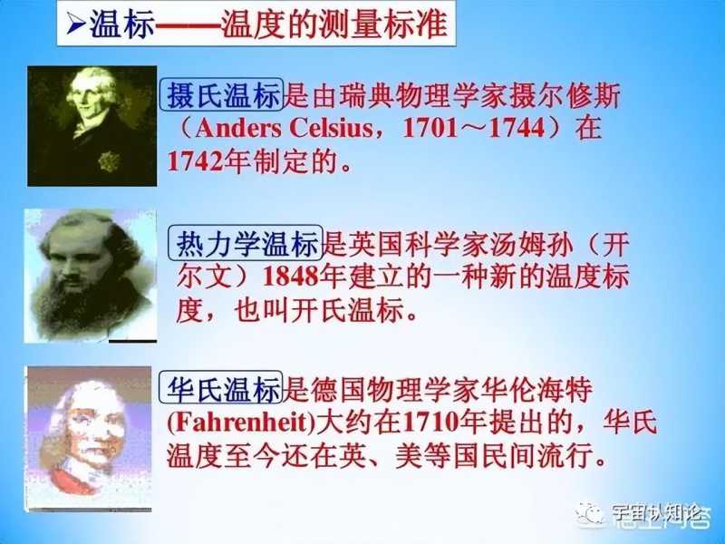 现在我们最熟悉的温度单位是摄氏度,是瑞典人摄尔修斯(1701~1744)最早提出来的,以数字刻度表明温度高低的方法。所以以他的中文译名的第一个字为单位,符号为℃。