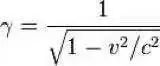 而两个时间的比值(t/t')则为下图部分,这部分叫做洛伦兹因子,因为是荷兰物理学家洛伦兹最先发表的。