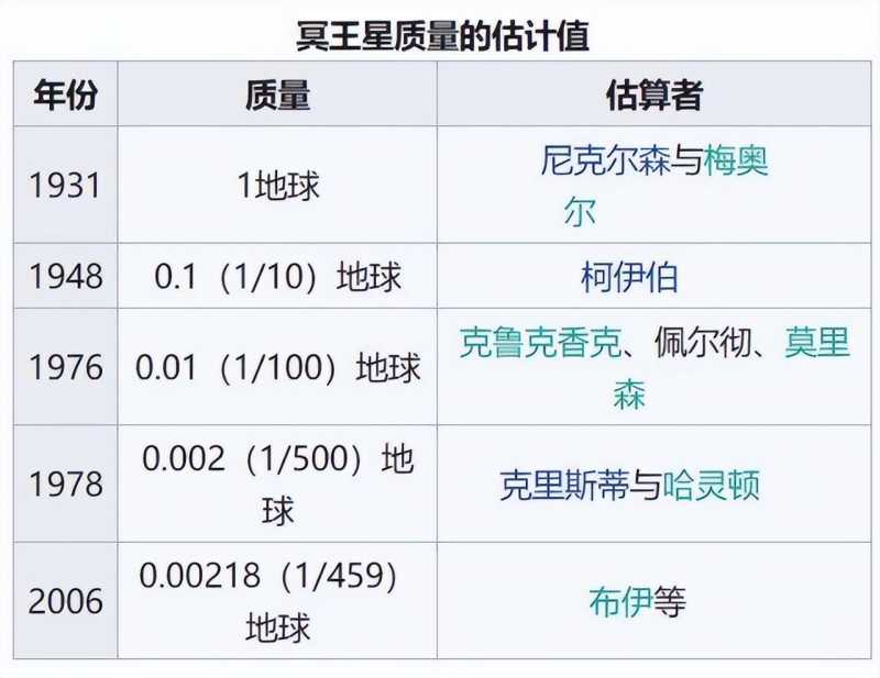 1989年,美国的水手2号探测器,近距离发现海王星原来是个”橘子“,真实质量比之前估算的要小出一个火星大小。于是,科学家重新审视冥王星,最终基于多方面数据确定质量是0.002个地球,就连月球质量都是它的6倍之多。