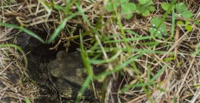 蟾蜍在即将过冬的时候,会成群在水底的泥沙或者是在陆地比较潮湿的地方挖一个洞,将自己包裹起来依靠体内所储存的能量维持整个冬天。