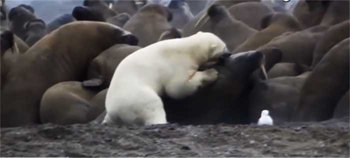 进入冬季之后北极熊就开始进入冬眠,它的呼吸频率就会降低短时间内就会不吃不喝。
