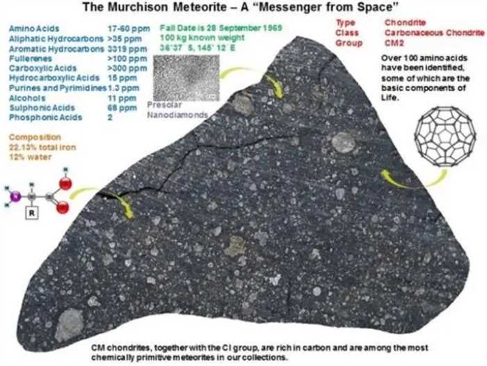 2022年,日本北海道大学一个科研团队在《自然》杂志上发表了一篇研究成果,大场康弘和他的队员们再次分析了1969年坠落在澳大利亚的陨石,在陨石的成分中检测到了碱基,这表面陨石上极有可能存在过生命。