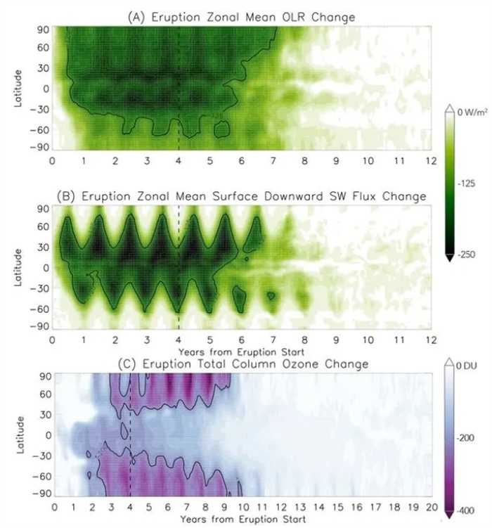 NASA曾做过一项气候模拟实验,表示洪水玄武岩喷发能让地球大规模变暖,而且还能破坏臭氧层。这种喷发事件不像我们熟知的火山喷发,时间很短,它能持续数百年,甚至上万年。