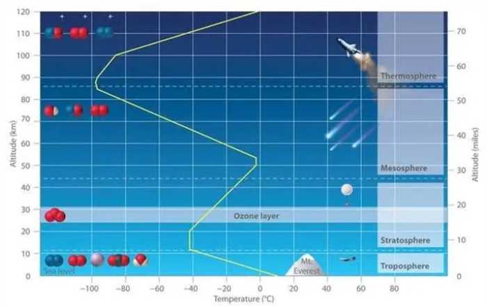 海拔每升高1000米,气温会下降6度,如果地面温度是30度,10000米的空中便只有零下30度。