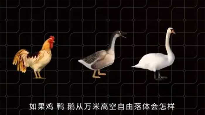 所以在空气问题上,鸡鸭鹅从万米高空下落,鸡和鸭可能还没升到既定的高度已经伤亡,只有鹅是活下来概率最大的动物。