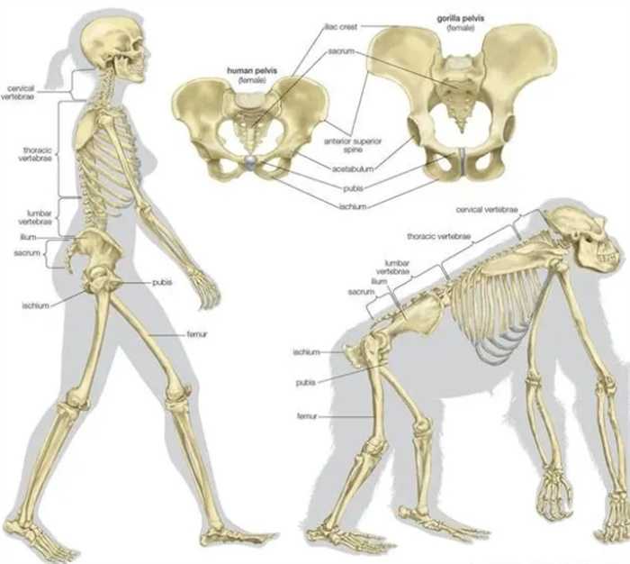 黑猩猩可以四肢着地爬行,也可以抬起上半身像人一样直立行走。并且它们走路的时候会向左右摇摆,脚也会呈外八字,看起来萌萌的、憨憨的,但是一点都不优雅。可跟人类比,它们的盆骨就更大,更适合分娩。