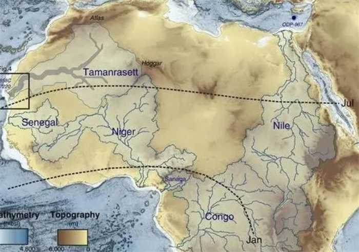科学家们已经多次发现撒哈拉沙漠底部的古老河床,这些河床早已沙埋,但众多的岩石、岩屑和矿物质仍是显而易见。沙漠底部的地貌显示出了该地区曾经期间地球进动造成的转换——从沙漠到湖泊再到河道,这种转换最后将河床和湖泊的遗迹留在了撒哈拉沙漠深处。其中,一处被科学家揭示的巨型湖泊,据估算其面积达到了10.8万平方公里,深度达到了247米,即使在低潮期也有着4.8万平方公里的面积和190米(最深处)的深度。