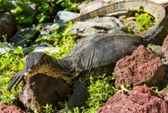 从名字来看,不了解的朋友可能会误以为是“龙”出现了,实际上五爪金龙是一种巨蜥,它们全身布满细细的鳞片,头狭长、舌分叉,成年的五爪金龙体长可达2米左右,最长的五爪金龙可以达到2.7米。五爪金龙的身体结构比较特别,它们的尾巴很长,尾巴的长度大约占了体长的五分之三。它们的头部、躯干背面呈黑褐色,还有一些黄色的小斑点,而它们的腹部则一般是黄色。