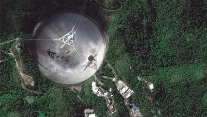 2017年,飓风玛丽亚严重摧毁了阿雷西博射电望远镜的面板。而最致命的打击则发生在2020年,望远镜的两个支架突然断裂,量级将近几吨的接收平台掉了下来,导致望远镜的盘面完全损毁。