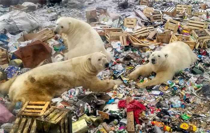1.气候变化给动物族群带来了失去栖息地的威胁。北极熊被迫在俄罗斯近北极小农村的垃圾场寻找食物,融化的北极冰迫使它们不得不在陆地上觅食。全球的不断升温导致海冰融化,北极和南极的冰盖面积缩小,进而加速地球的升温,形成了恶性循环。