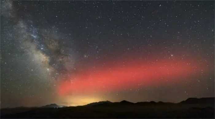刚好就在这个时候,太阳风或者宇宙射线比较强,激发着氧分子从而产生红色光芒。
