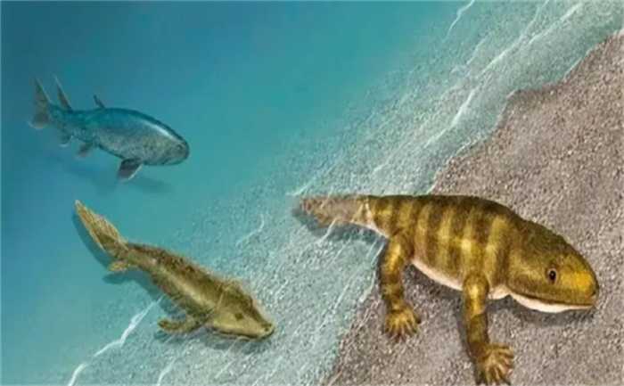 地球陆地生物和两栖生物的祖先 生活在泥盆纪的鱼石螈 率先登岸