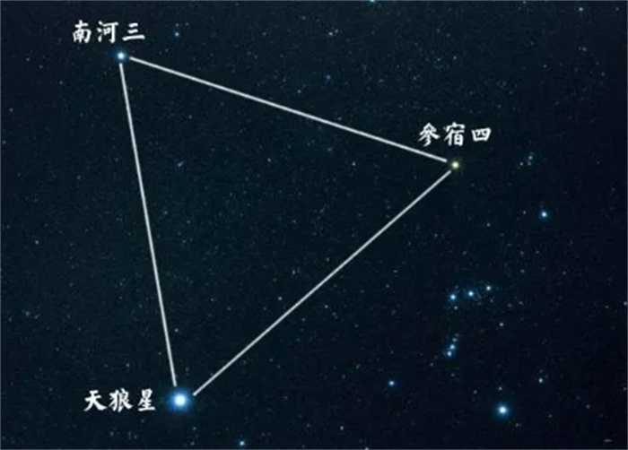 另一部分是太阳系之外的恒星。比如,距离地球约8.6光年的天狼星,距离地球约640光年的参宿四,以及距离地球约11.5光年的南河三。这三颗恒星在视觉上形成一个我们能够看到的三角形。