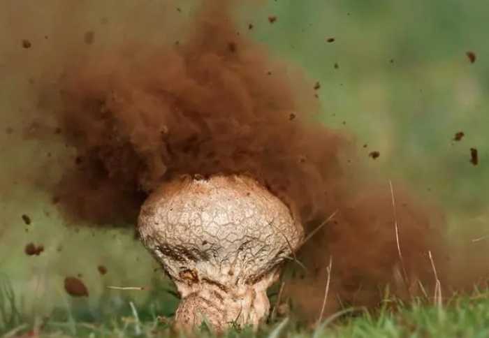 还有另一种小编非常喜欢的蘑菇,这种蘑菇长得像泄气的足球。一旦有人去踢它时,它散发出一团烟雾,这就是马勃菌。马勃菌散发出的烟雾,实际上是数百万的孢子,它们是蘑菇的种子,踢马勃菌一脚,实则是帮它把种子撒到风中。