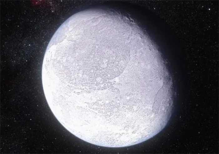 阋神星是一颗非常“纯洁”的星球,它通身雪白,从它的颜色,想必你也能明白,这颗星球肯定很冷,其表面温度在零下243摄氏度左右。阋神星因为距离太阳足够远,所以即便是在反照率不高的地方,甲烷也能凝结在表面上。