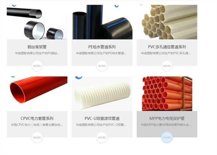 该公司生产的各类管道解决了其他管道存在的问题,使其更耐用、应用范围更广。例如,成都华迪塑胶生产多个品类的PVC管道,包括CPVC电力套管系列、PVC-U双壁波纹导管和PVC多空通信管道系列。