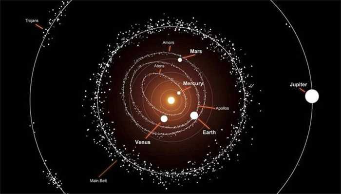 地球仅仅是离太阳第三近的行星,最近的是水星,其次是金星,然后才是地球。地球需要365天才能完成一次公转,与太阳的平均距离约为150百万公里。在天文学中,我们将这个距离称为天文单位。以光速飞行,需要大约8分20秒才能穿越这个距离。让我们现在向太阳系的外围移动。在火星和木星轨道之间,我们会遇到小行星带,这些小行星的直径从几公里到几百公里不等。