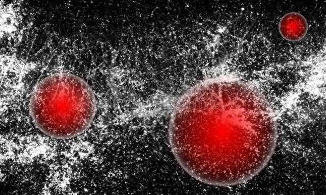 再来看暗物质。暗物质是一种不发光、不发射或吸收任何形式的电磁辐射的物质,它只通过引力与其他物质相互作用。暗物质的存在是宇宙学中的一个谜团,它对于解释宇宙中的星系和星系团的运动以及宇宙大尺度结构具有重要意义。