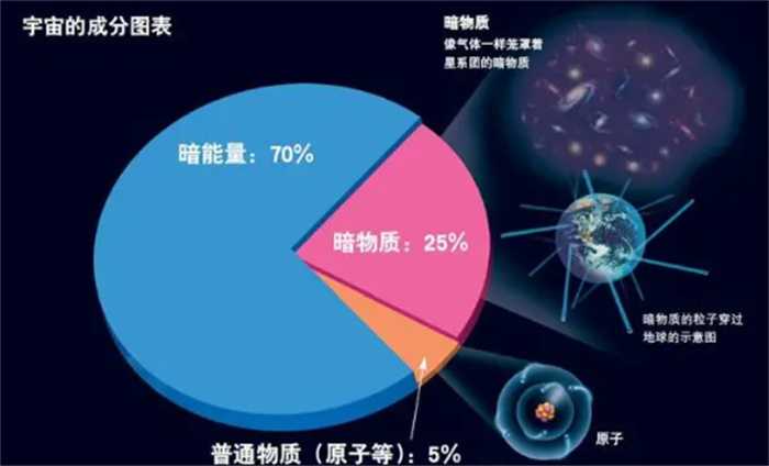 根据当前的宇宙学模型,我们已经发现的物质只占宇宙整体的4.9%,剩下的是26.8%的暗物质和68.3%的暗能量。这意味着,人类对宇宙的了解仅占整体的20分之一,暗物质和暗能量才是宇宙的主要构成。